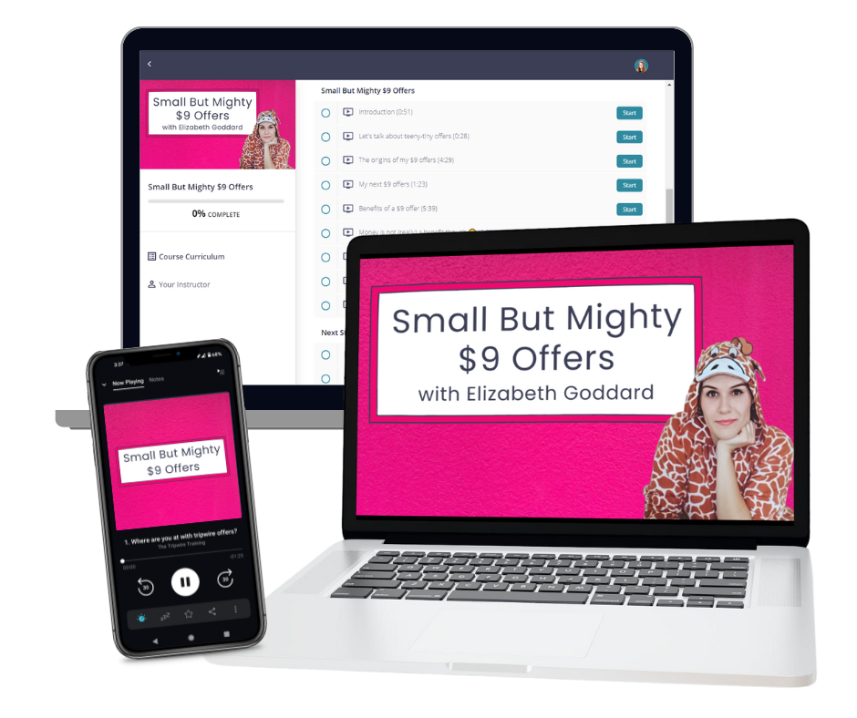 The super-meta, teeny-tiny course that gives experienced digital product creators the inside scoop on adding a bite-sized $9 offer to their business.